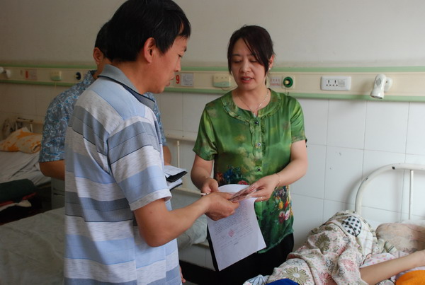 6月4日下午,区人大副主任李淑霞带领区民政局局长汪东等来到市中医医院,看望慰问了患病少年雷梦婷,送上3000元临时救助金,鼓励小梦婷勇敢坚强,战胜病魔,并向小梦婷的父亲雷小锋通报了后续救助工作,带去各级的温暖。同时希望小梦婷家长也要坚强,要以孩子的生命为重,继续为孩子治病,有各级党委政府和社会各界的共同关注与帮助,一定会度过难关。
