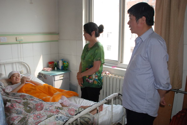 区人大副主任李淑霞、区民政局局长汪东到市中医医院看望慰问患病少年雷梦婷