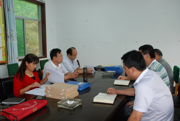 牛康季一行在板桥镇听取落实会议精神的工作汇报