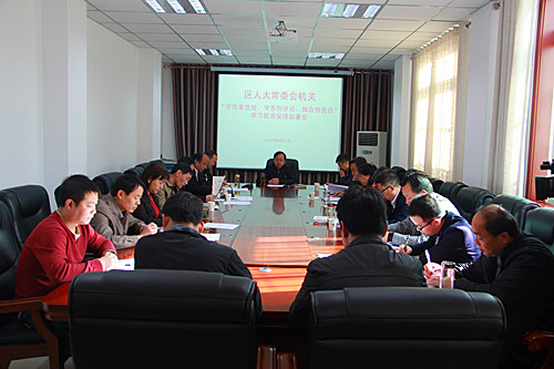 区人大召开“两学一做”学习教育安排部署会 4月21日上午,区人大机关召开“两学一做”学习教育动员大会,对人大机关开展“两学一做”学习教育活动进行部署。区人大机关党组书记、主任牛康季出席会议并讲话,区人大机关党组副书记、副主任王结实主持会议,区人大机关全体党员干部参加。会上传达学习了习近平总书记关于在全党开展“两学一做”教育活动的重要批示精神,学习了《在区人大常委会机关开展“学党章党规、学系列讲话,做合格党员学习教育的实施方案》的通知。